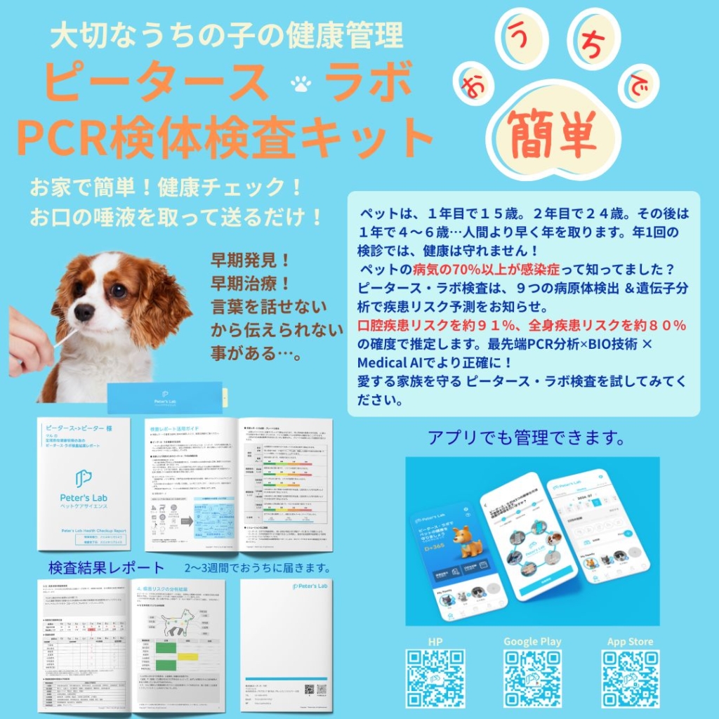 忙しい飼い主でも続けられるケアとして、 病院だけに頼らない“日常の予防” が必要だと思い、自宅で簡単にケア・チェックできる検査キットを科学的根拠に基づいた製品として、たくさんのエビデンスを集め研究開発しました。飼い主が“気づける”サポート「難しい医療を、日常の習慣へ」変えていきたいと思っています。 私たちは、特別なことではなく、日常の中で無理なく続けられる予防習慣をサポートしています。 そして、小さな気づきの積み重ねが、未来の安心につながると信じています。