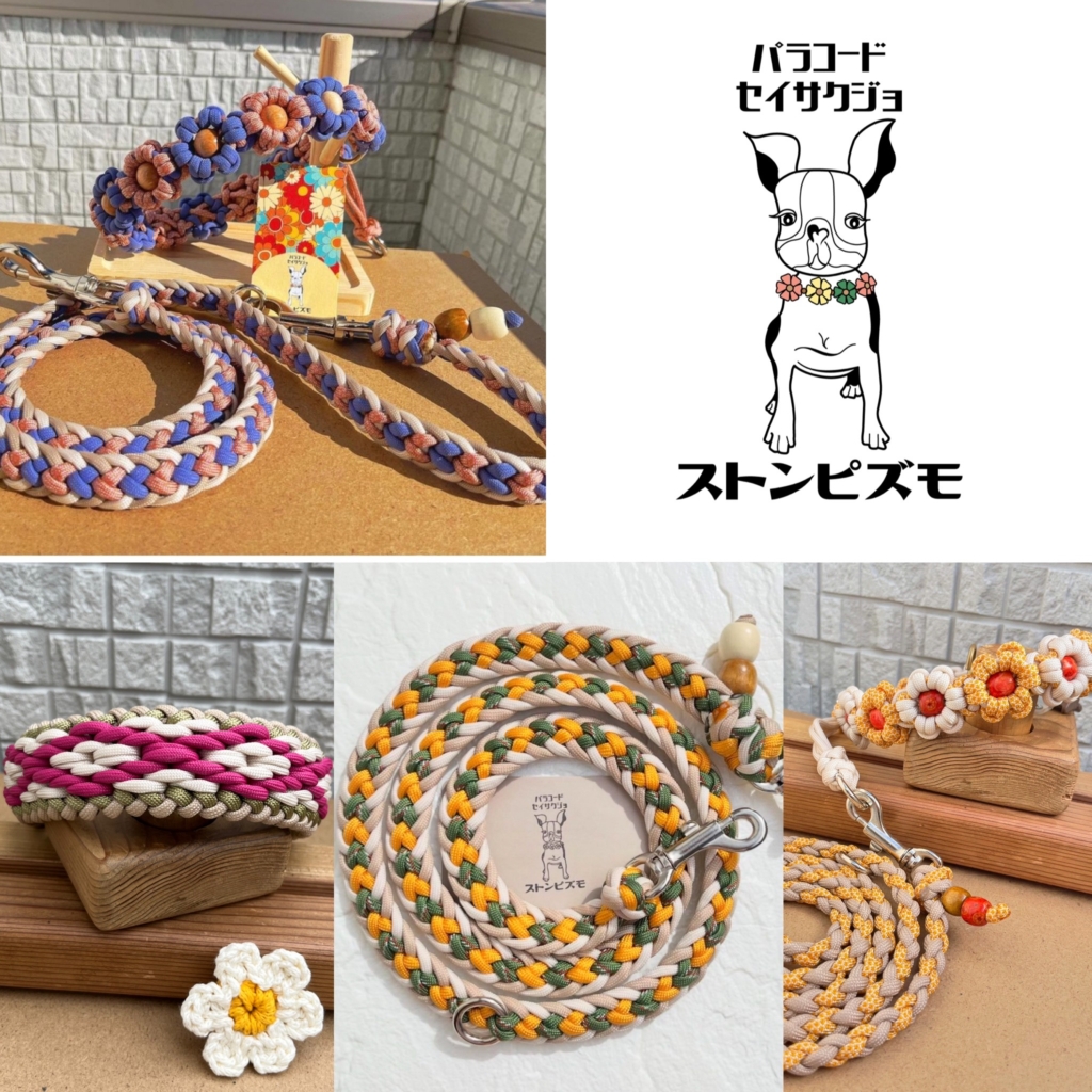パラコードセイサクジョ・ストンピズモでは大切な愛犬の命を守る為により強度の高い『ナイロン100%のパラコード使用・ワンコ用金具を使用』し強度重視の芯のある編みで首輪やリードを制作する元保護犬の2匹と暮らすハンドメイド屋です♪ パラコードを使いワンちゃん用のリード・首輪・ハーネスを主に制作しています。 他、スマホショルダーストラップなども多数、製作、ご用意してます𓇼 当時オーダーも承ります。ワンちゃんとお揃いも出来ます!! またシュールな刺繍屋 roomゆうみのウチの子刺繍もお店に並びます! ぜひお立ち寄りください!